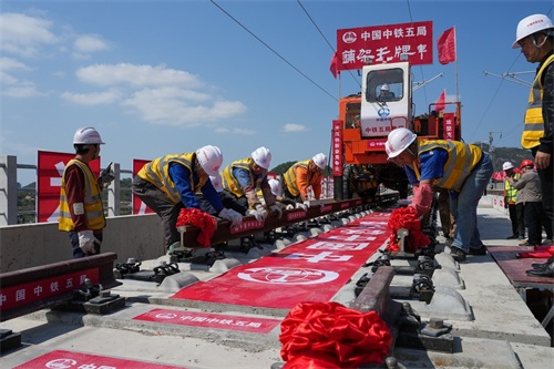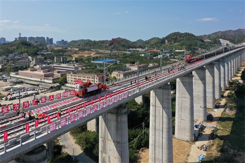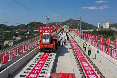 广汕铁路正线铺轨贯通