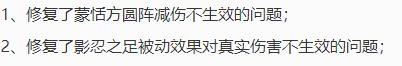 在这次更新的最底部,官方修复了两个BUG,一个是蒙恬的,但由于很少人使用方圆阵,所以很少有人发现,但另一个影忍之足的BUG应该是人尽皆知了,影忍之足的被动无法对吕布真实伤害的普攻进行伤害减免,而这次调整,可以让各种带真伤的普攻都能进行伤害减免。