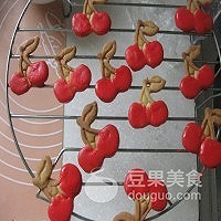 9、 将烤好的饼干放凉后,用巧克力装饰成樱桃颜色