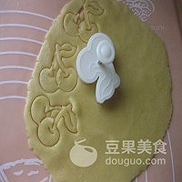 6、面团取出擀成一张面皮,然后用饼干模具压出形状