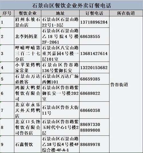 足不出户 尽享美食!石景山区40余家餐饮企业外卖订购电话来了~
