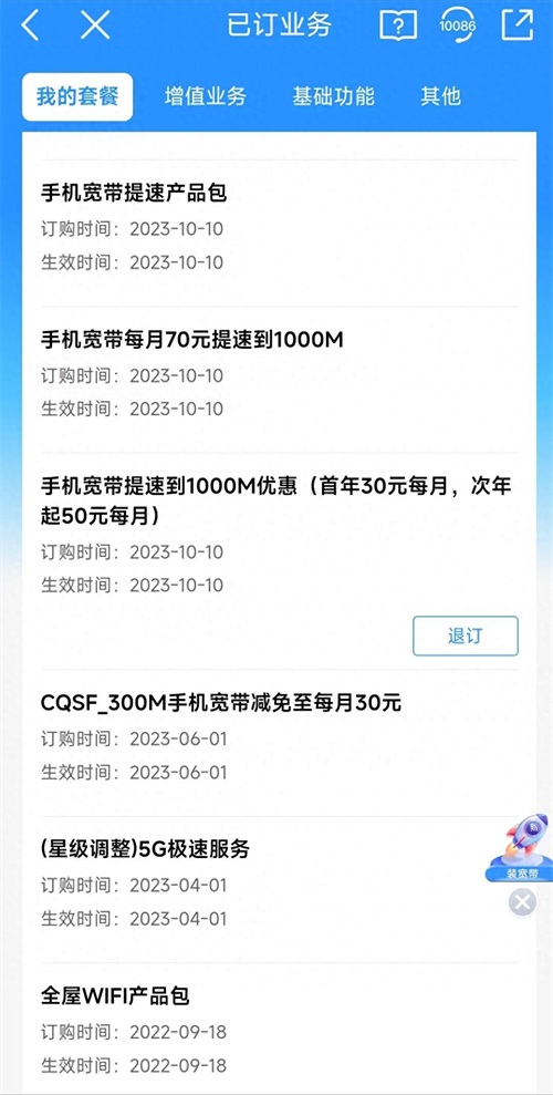 今年9月份收到通知1000M宽带的优惠10月份到期,要按照每月50元收费了,感觉不太划算就打电话取消掉1000M宽带,用回原来套餐里赠送的300M免费宽带,这样每个月的话费支出也会少30元。