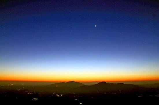 金星围绕着太阳公转时,会在地球的轨道内,太阳光的照射角度也会随之变动,所以金星会比太阳早几个小时升起,晚几个小时落下,才会出现黎明前的启明星和傍晚后的长庚星。