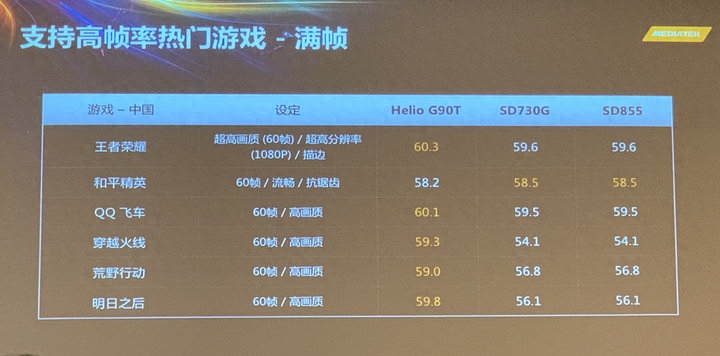 比如在平均帧率和帧率稳定性这两个指标上,联发科表示 G90T 的表现要优于骁龙 730G 和骁龙 855。