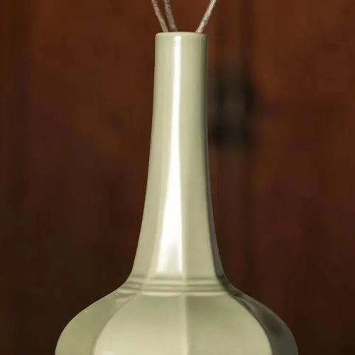 观复博物馆以馆藏文物【唐代 越窑青釉圆腹长颈瓶】为蓝本,借鉴法门寺地宫出土的【八棱瓶】形制,推出——秘色越窑八棱瓶。