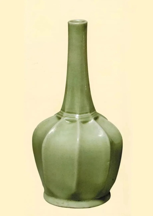 此「秘色越窑八棱瓶」,外形端庄规整,釉色青中泛黄。