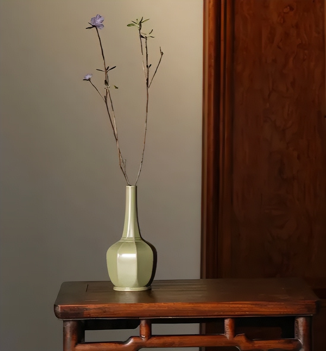 观复秘色越窑八棱瓶景德镇陶瓷花插摆件家用花插礼盒摆件