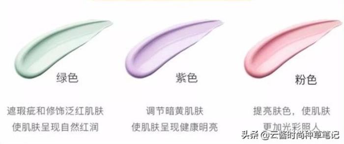 2.隔离霜:隔离霜的质地有粉底色的,有粉色、紫色、绿色和白色等,可以根据需要选择调整肤色。常见的就是紫色的隔离跟绿色的隔离了,是针对暗黄肤色和痘痘肌肤来设定的。
