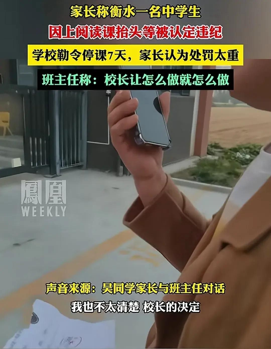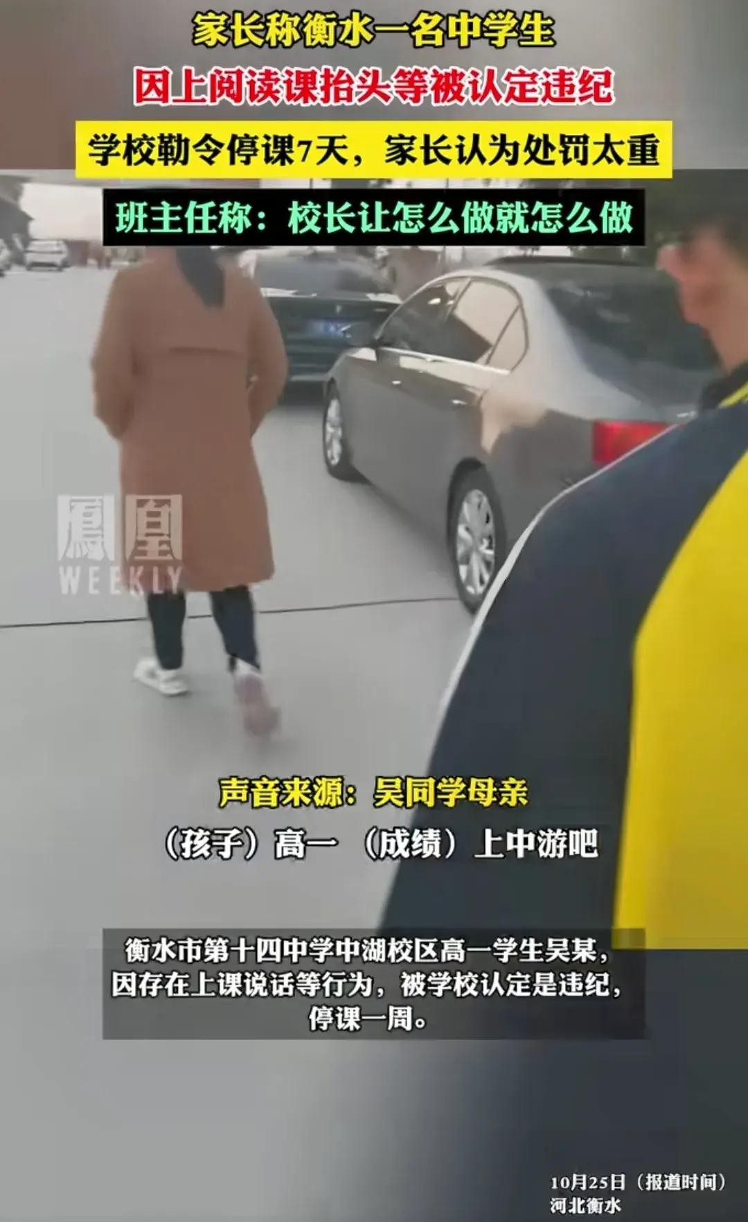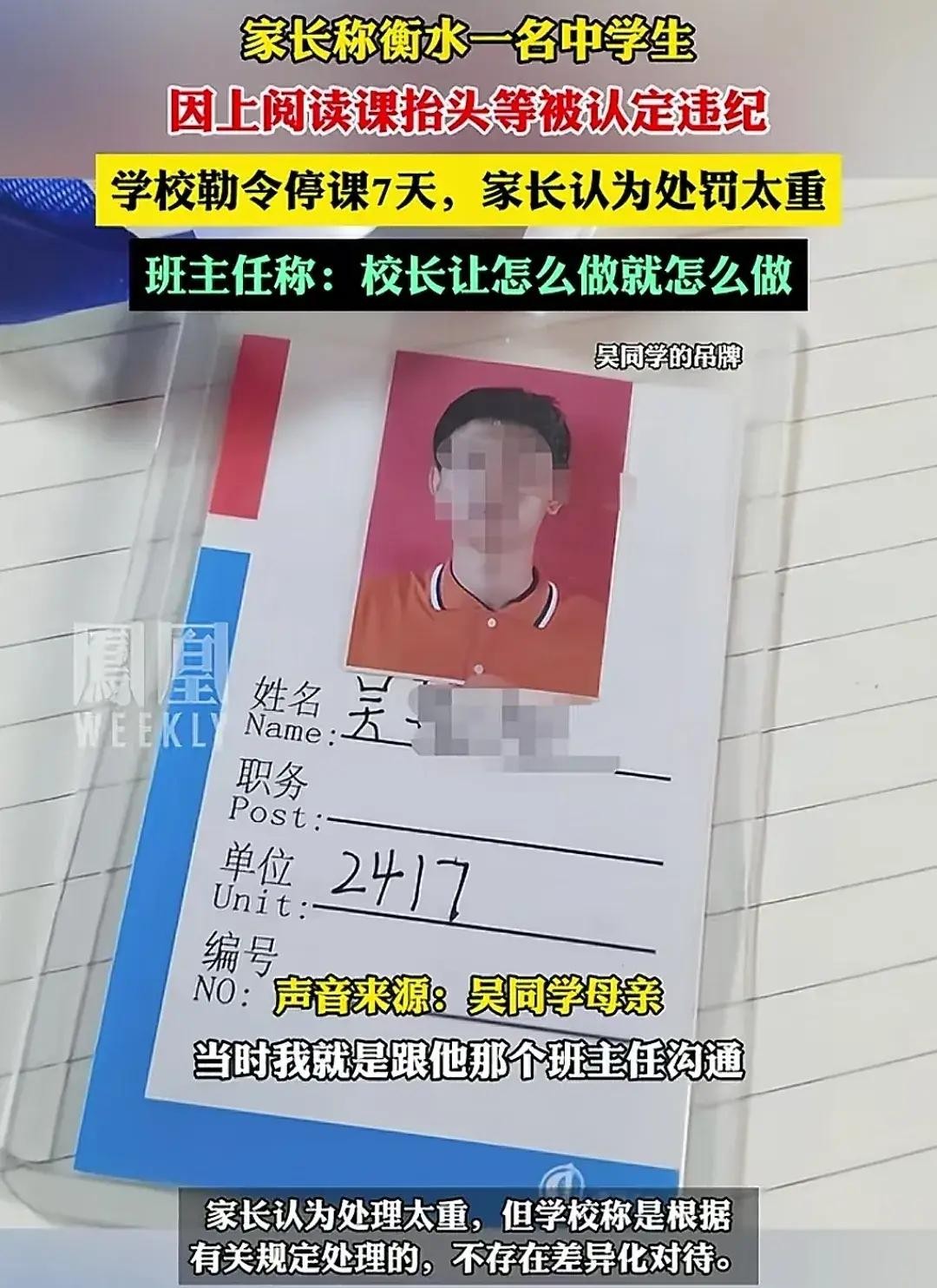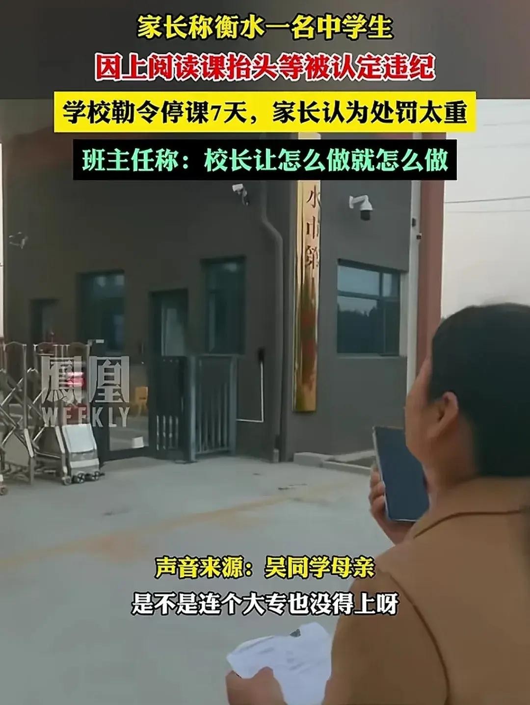 在我们的印象中,学校应该是一个传播知识、启迪智慧的神圣殿堂。然而,最近发生在衡水第十四中学的一起事件,却让无数人大跌眼镜。一名品学兼优的高一学生,仅仅因为在阅读课上抬了一下头,就被学校勒令停课七天。这一消息一经曝光,立即在网上引起了轩然大波。