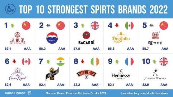 品牌强度指数最高,五粮液居全球烈酒品牌第一名