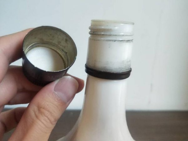 对于金属旋盖的白酒,喜欢品酒的朋友一定要注意,金属旋盖反复扭紧并打开会使金属旋口和瓶体玻璃旋口反复摩擦,长此以往,很容易把金属盖的外膜磨破,使得许多金属细末挂于瓶口。因此对于品酒圈的朋友,如果您选择一款金属旋盖白酒作为您的品鉴样品,建议您将此酒分装到分享瓶里再慢慢品鉴,因为酒厂根本都没想到这瓶酒卖到您手上会反复开盖品鉴。