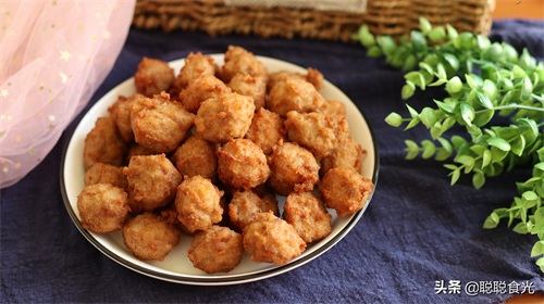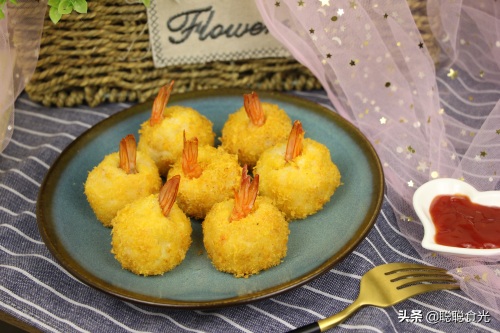 7、接着把油烧热,依次放入腌好的虾仁,炸到虾仁完全变红,变成球形的时候就可以捞出来了。