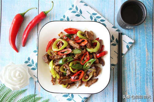 做法:1、准备一块牛里脊肉,逆着纹切片,加入适量盐、生抽、胡椒粉、水淀粉抓拌均匀。