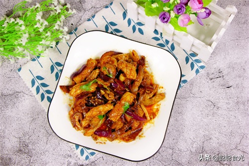 6、倒入之前调好的酱汁和芡汁,翻炒至浓稠即可盛出来。