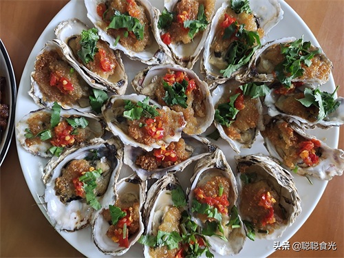 4、把蒜蓉酱淋在每一个鲍鱼上面,把盘子放入蒸锅,水开后蒸10分钟。蒸到鲍鱼颜色变白就好了,然后出锅撒点香菜末装饰一下。