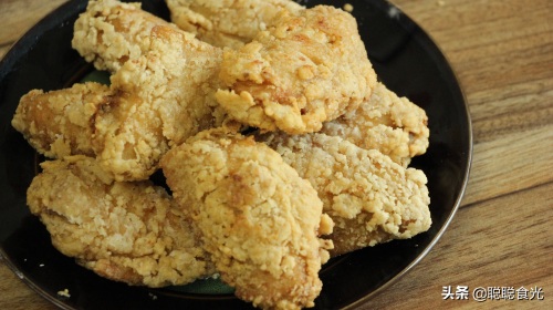4、鸡块腌制15~20分钟后,把鸡块放入烧热的油锅中,炸到表面金黄。
