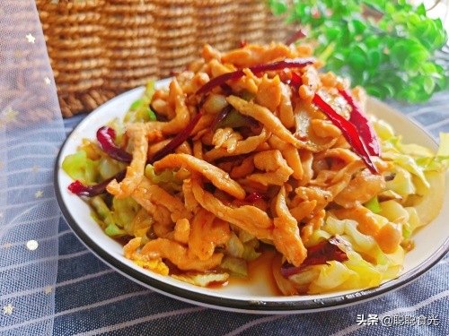 做法:1、把包菜洗干净切成细丝,再切点葱姜蒜末备用。干红辣椒煎成细丝备用。