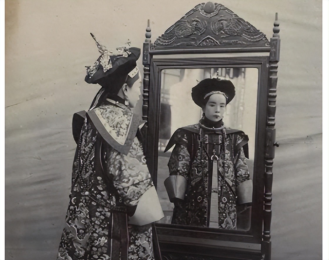 6.赫舍里氏身穿蟒袍,站在镜子前留影纪念