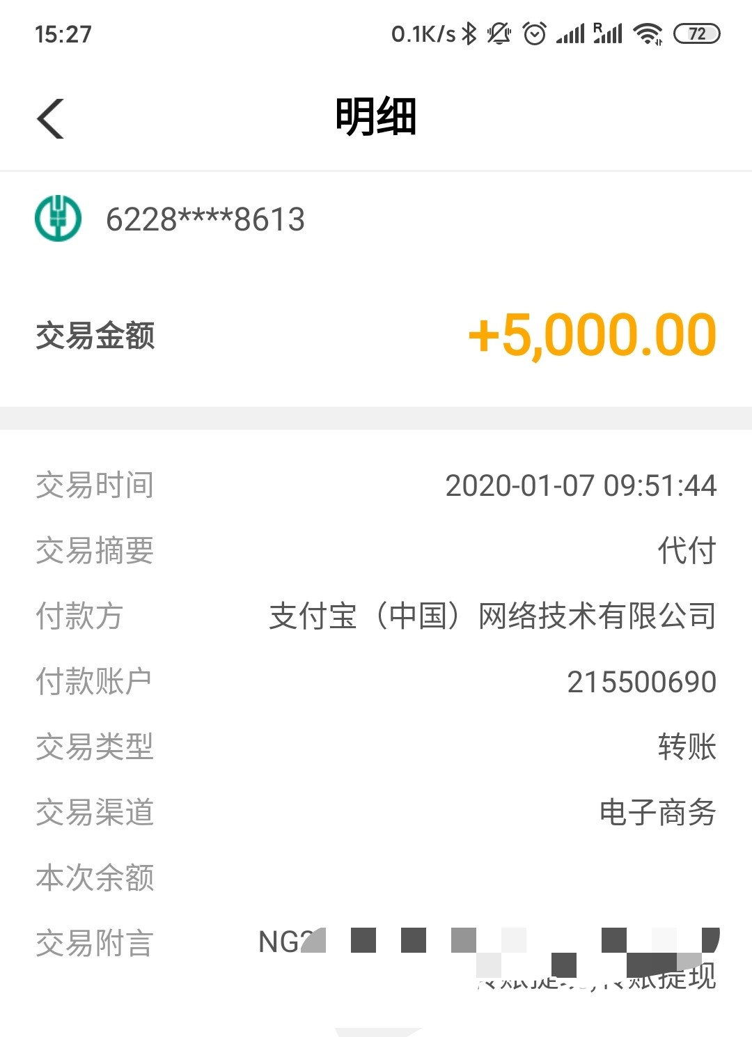 上图是其转账记录,没错,使用的是个人账户在网上进行转账,懂一点相关法律的人都应该知道,如果是单位企业公司,在对外进行收款支付时,必须使用企业公司在银行登记申请的专用账户,比如下图是从支付宝提现的交易信息