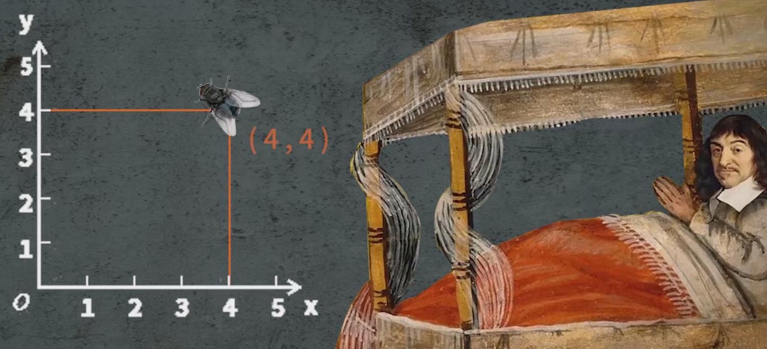 笛卡尔也不例外,只不过他马上就把打死苍蝇的冲动,转换成了一个严肃的数学问题:那就是如何才能给苍蝇精准的定位呢?