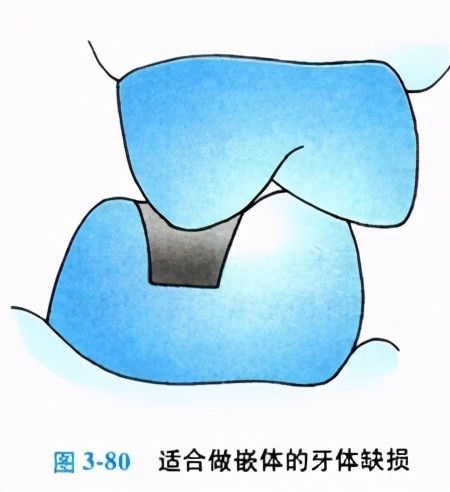 牙体缺损经牙体预备后,当剩余牙体组织可以耐受功能状态下的各向力而不致折裂,并能为嵌体提供足够固位形时,则为嵌体修复的适应证(图3—80)。否则应考虑其它的修复形式。