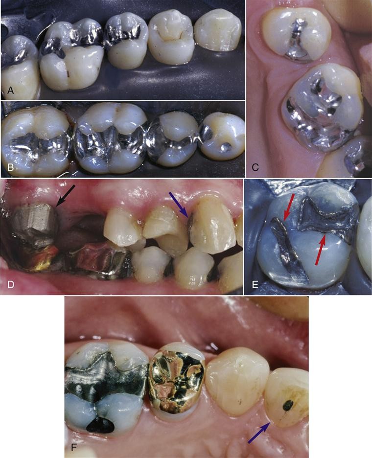 3.嵌体具有更好的机械性能 与银汞充填体相比,金属合金嵌体在强度、耐久性上更优越,特别是金合金嵌体具有突出的耐腐蚀性能,可长期维持准确的形态与完整的边缘。而与树脂、玻璃离子充填体相比,瓷嵌体和树脂嵌体美观性更佳、边缘收缩性更小、耐腐蚀性、抗压强度及耐磨性都有更良好的优越性。