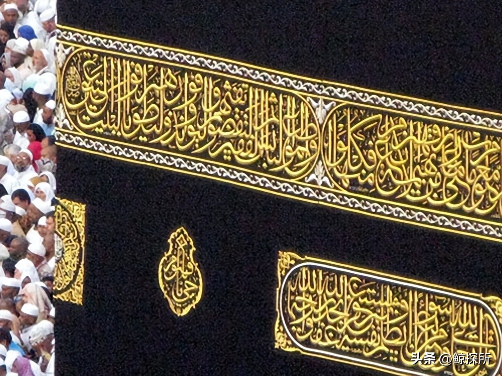 而它的独特之处在于,外表覆盖着黑色的丝绸幕布,而这层薄薄的丝绸价值连城,因为上面以精致的技艺,用纯金的丝线绣制了《古兰经》的章句,字迹清晰而神圣。