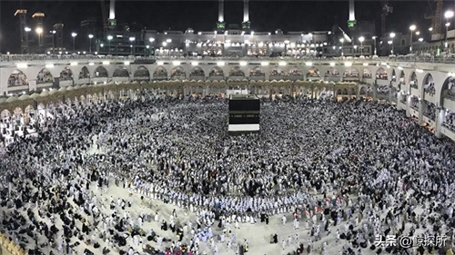 他们会围绕寺内的天房建筑物绕行7周,以示对真主的崇敬。