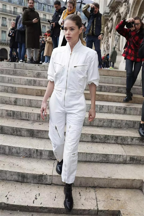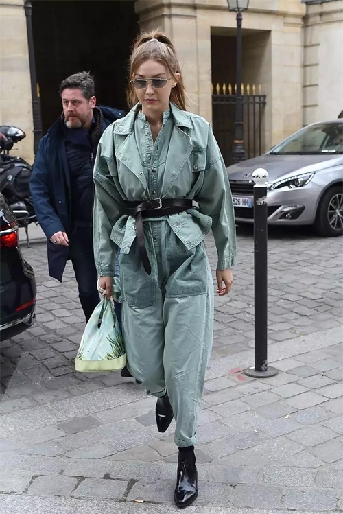 所以成套的工装风连体裤就成为了她衣橱的常客。