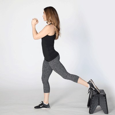 1.分开你的双腿,将左脚脚尖放在长凳上。