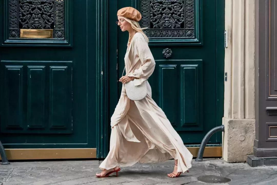 下摆带有垂坠感的散摆,丝绸质感看起来会更加高级,鞋子搭配上尽量选择简单的款式,厚底什么的对于腿粗的你要尽可能少尝试,穆勒鞋就很好。