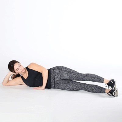 1.躺在右侧垫子上,背部、颈部和头部处于中立位置。