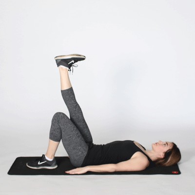 4.支撑你的核心并开始尽可能高地抬高你的左腿,暂停在顶部。