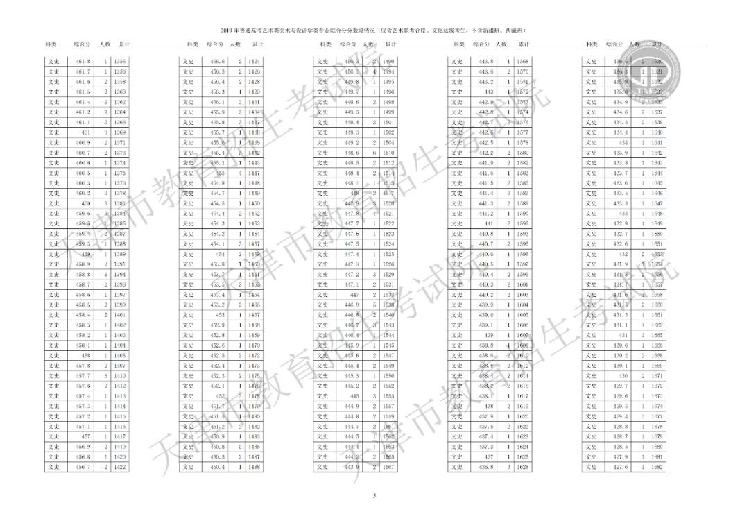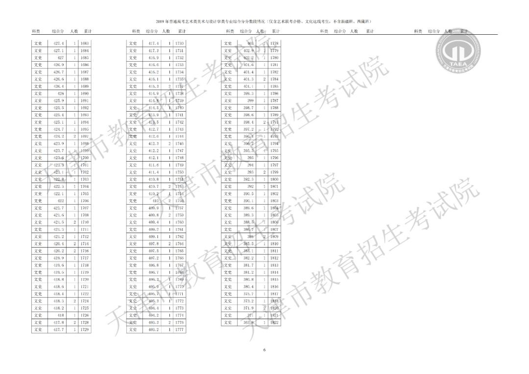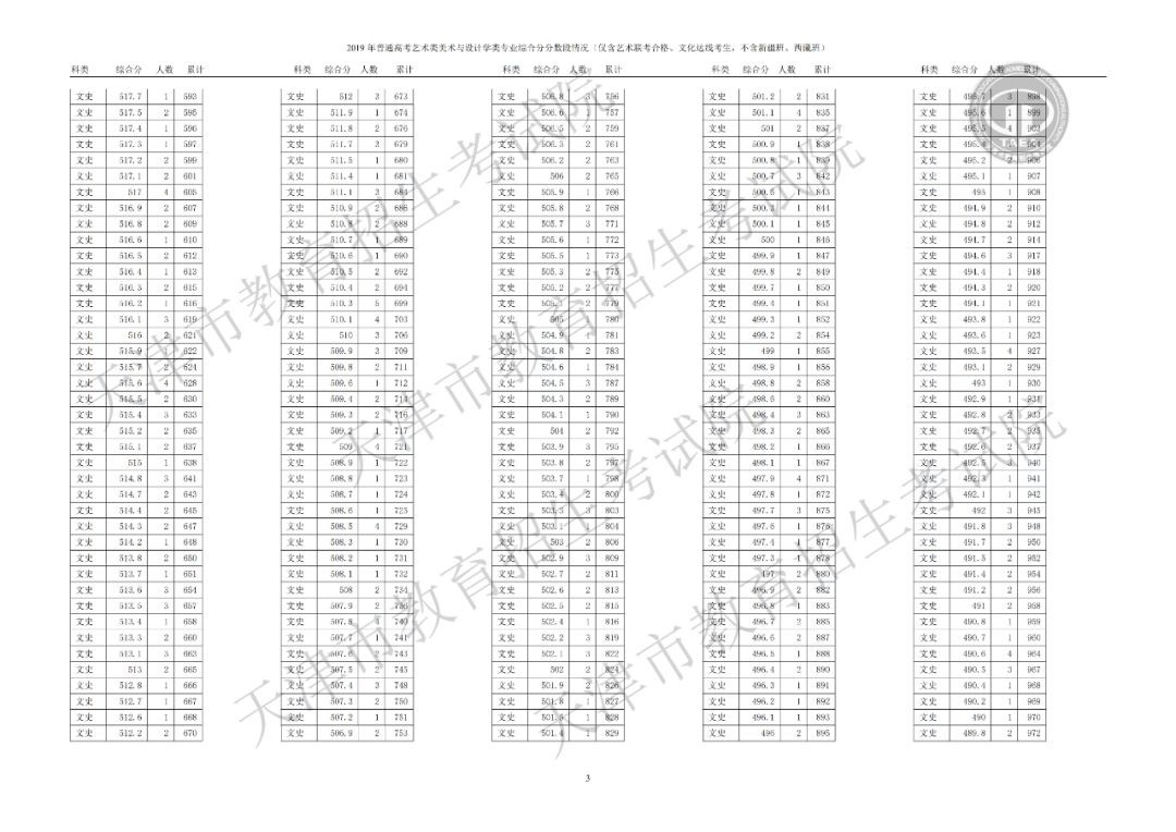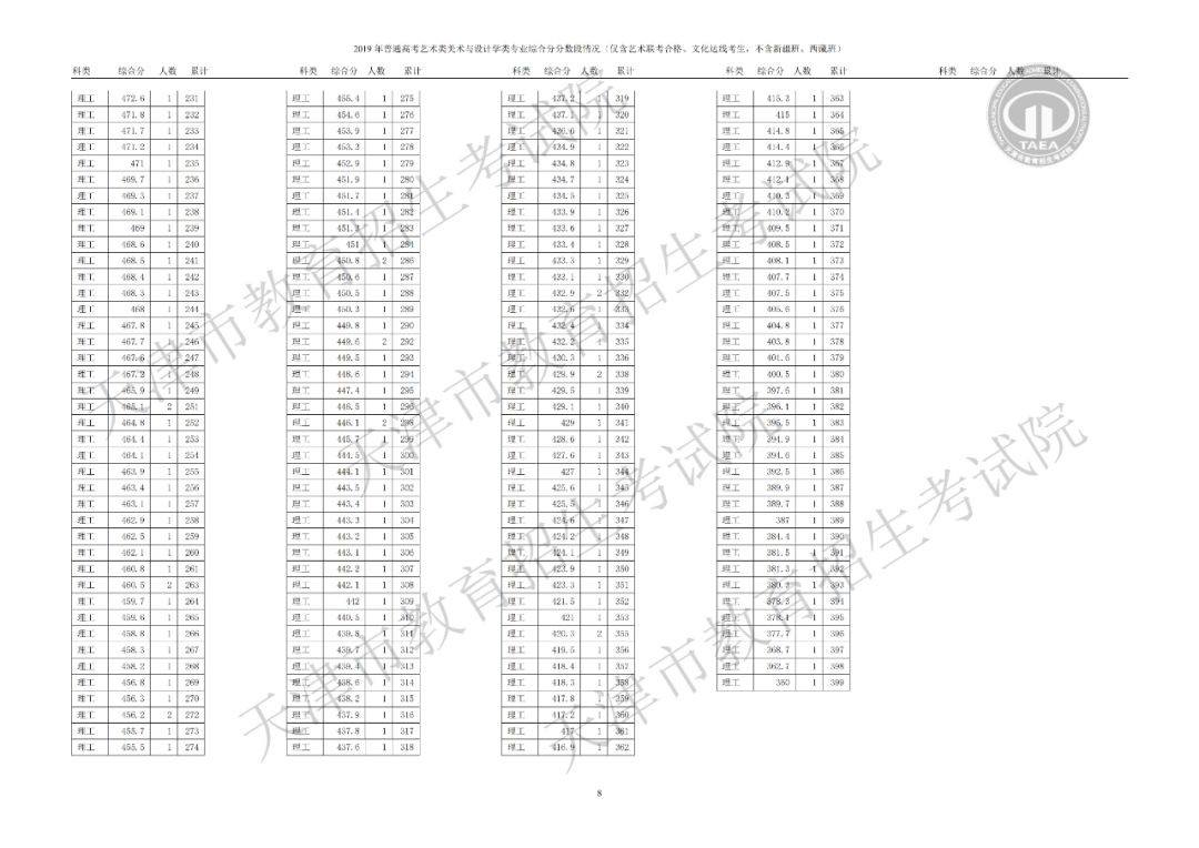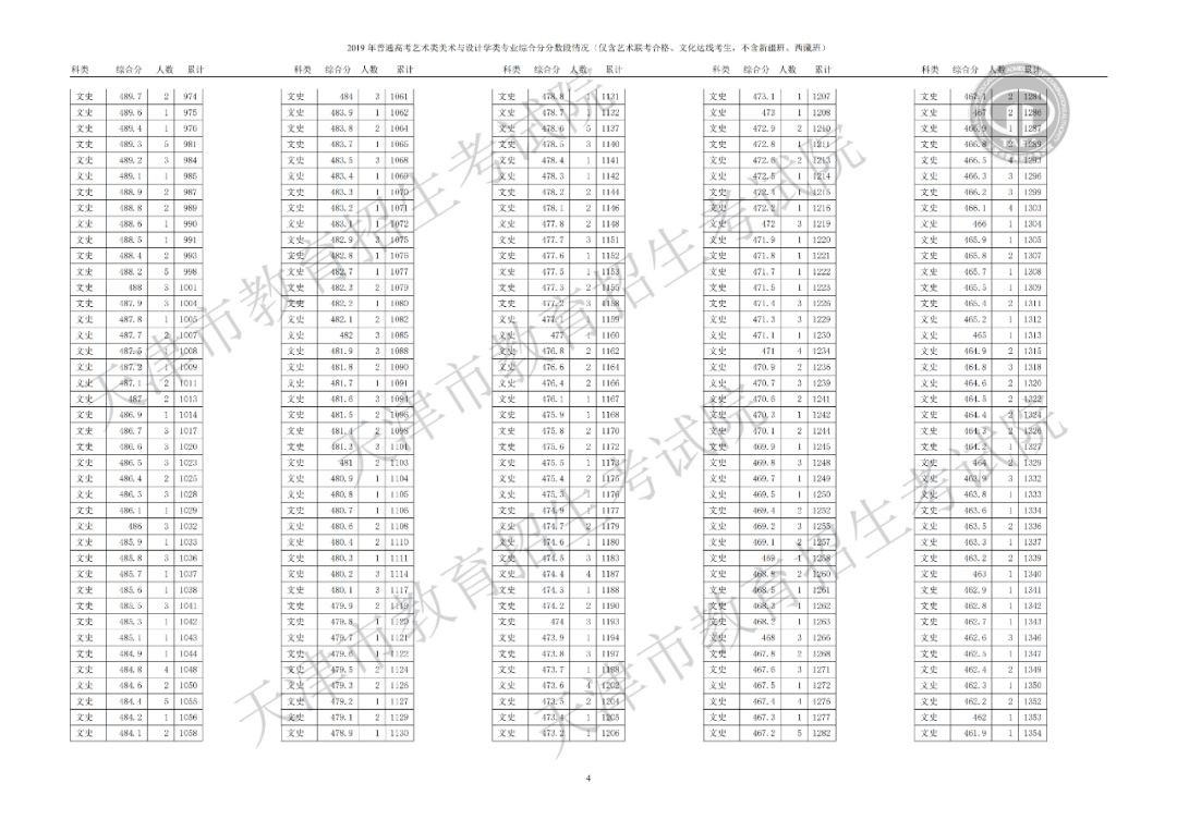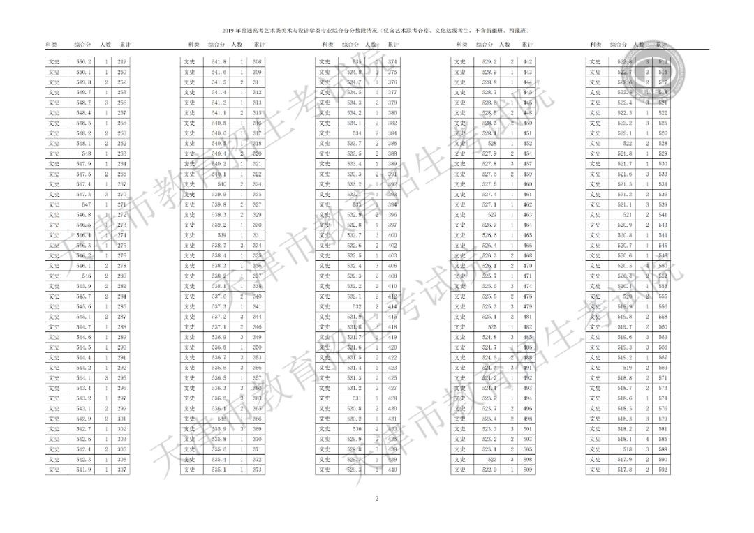 美术与设计学类综合分分数段情况(含政策加分)▼