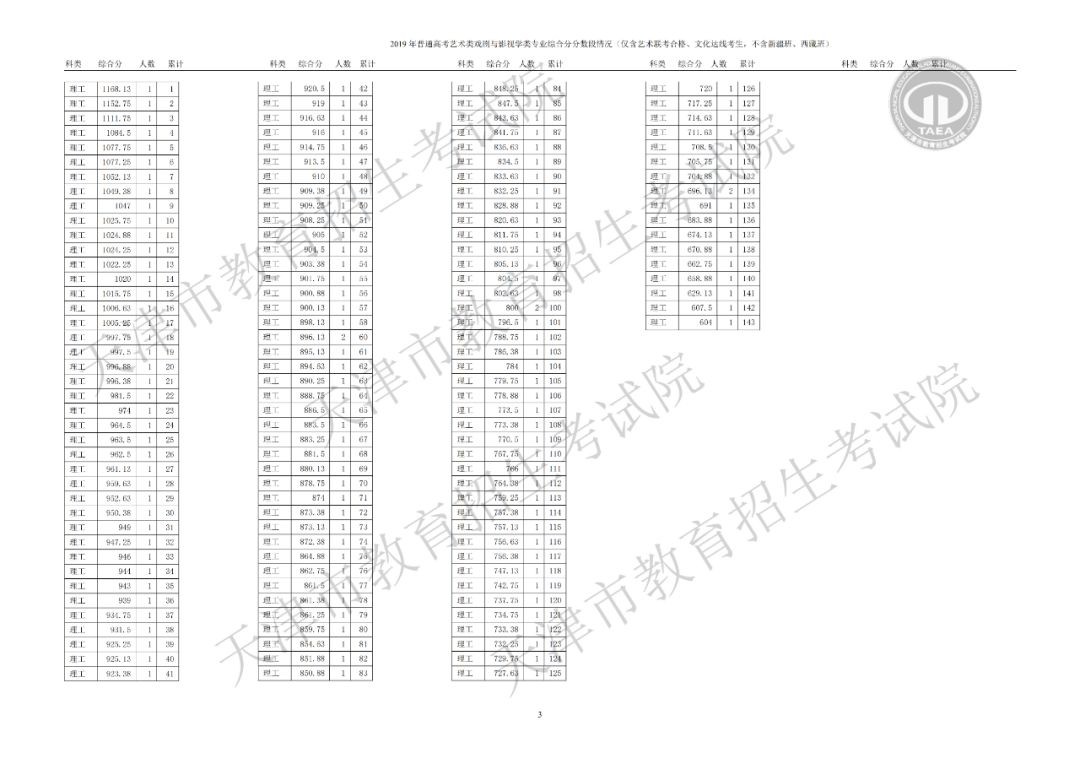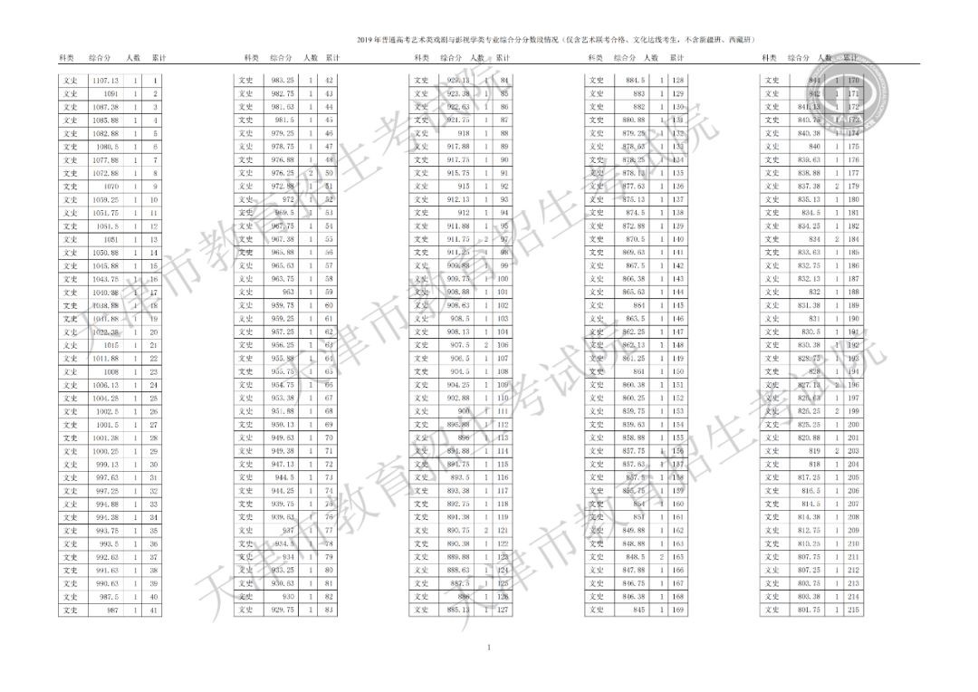 戏剧与影视学类综合分分数段情况(含政策加分)▼