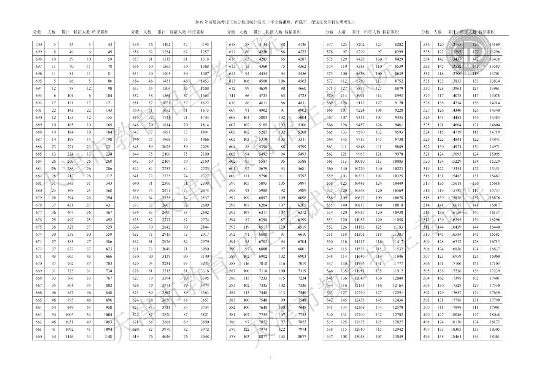 2019年高考数段统计情况(含政策加分)▼