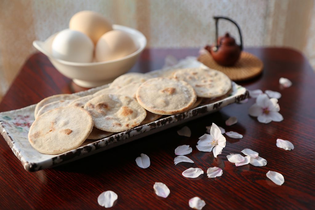 13、荞面饼:温水和面,每100g面粉约用58g水。