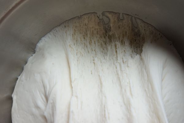 3、面团发到2倍以上大,扒开有蜂窝眼儿,面就发好了。面一定要发起来才能进行下一步。