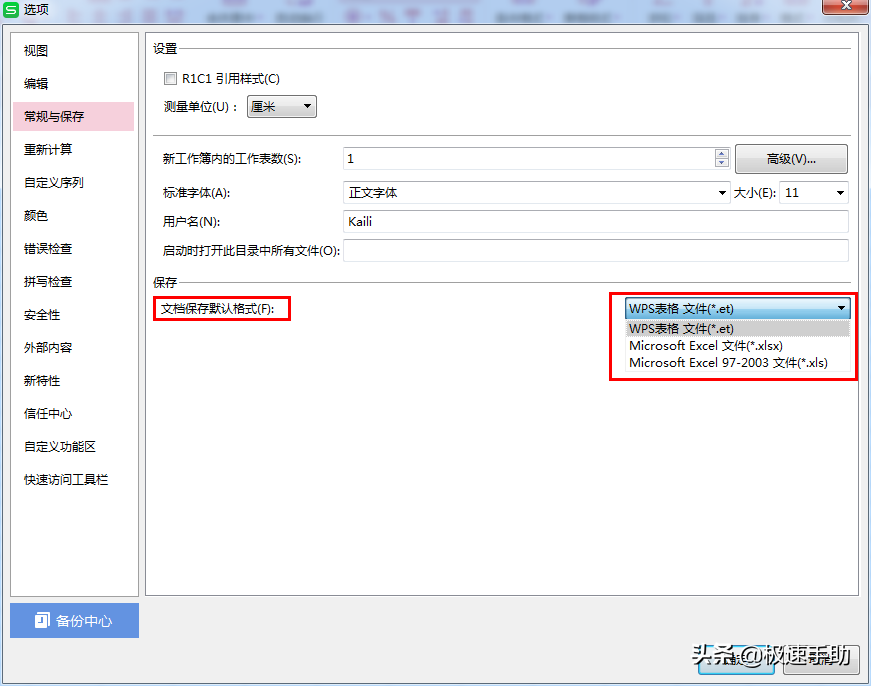 如果你是因为自己的原因,从而将需要保持的表格文件保存成了ET格式,那么此时我们可以来修改一下WPS表格的保存的默认格式为xls或xlsx格式。设置方法如下: