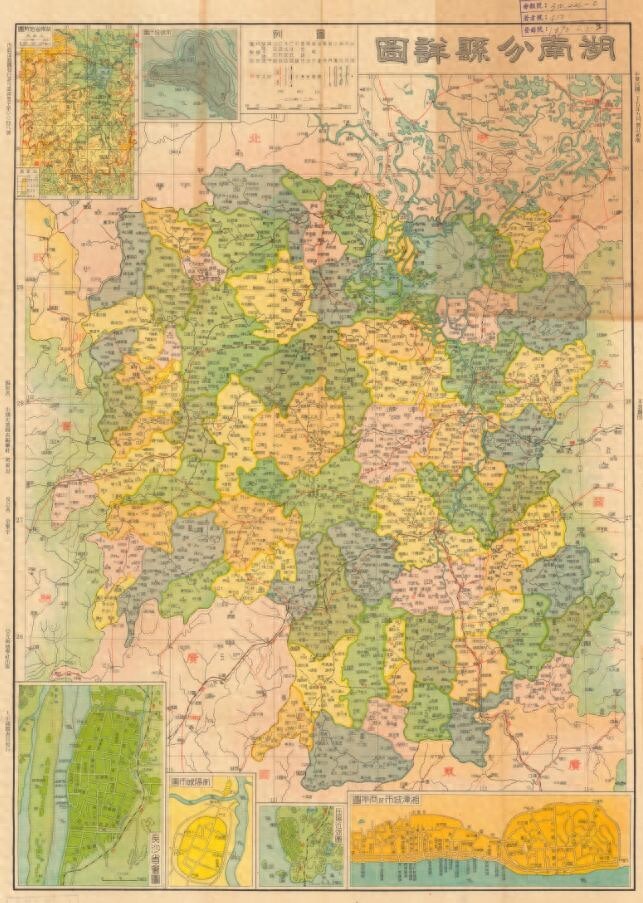 此图为民国时期湖南省地理地名历史变迁重要史料老地图。裱框之后研究与欣赏极佳。博物馆级老地图史料。