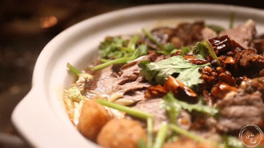驴肉砂锅咕噜咕噜的沸腾,铺上自制的辣酱增香添味,开盖就能感受到汹涌澎湃的鲜。里面的用驴油炸过的萝卜丸也很是惊艳!
