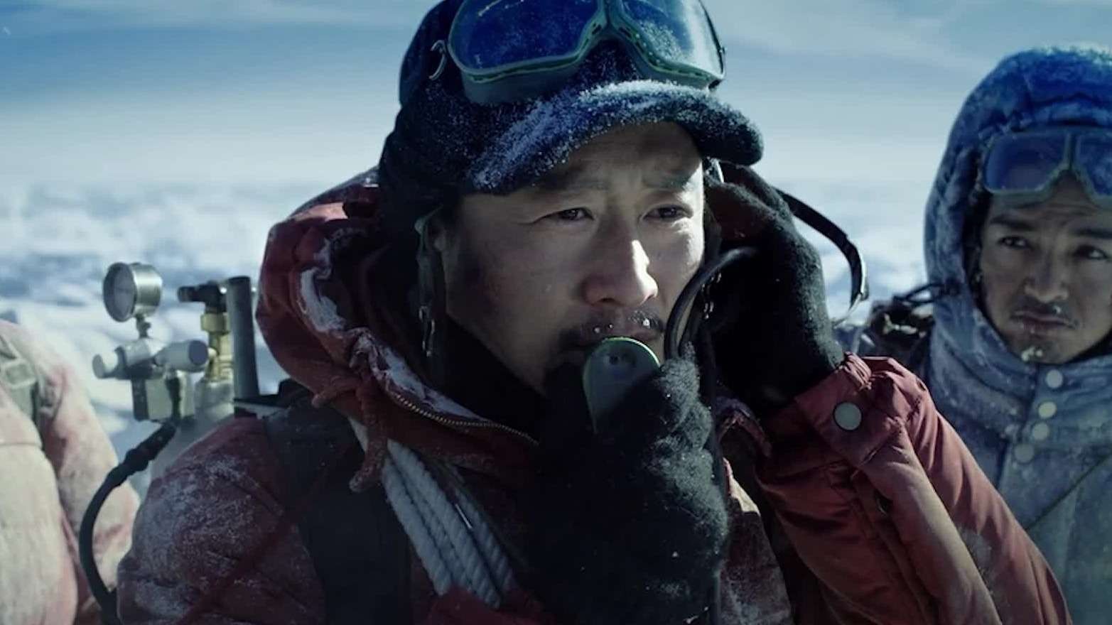 吴京在零下二十度的冰壁攀爬,冻伤的手指贴着岩缝寻找着力点,拍出了信仰的重量。