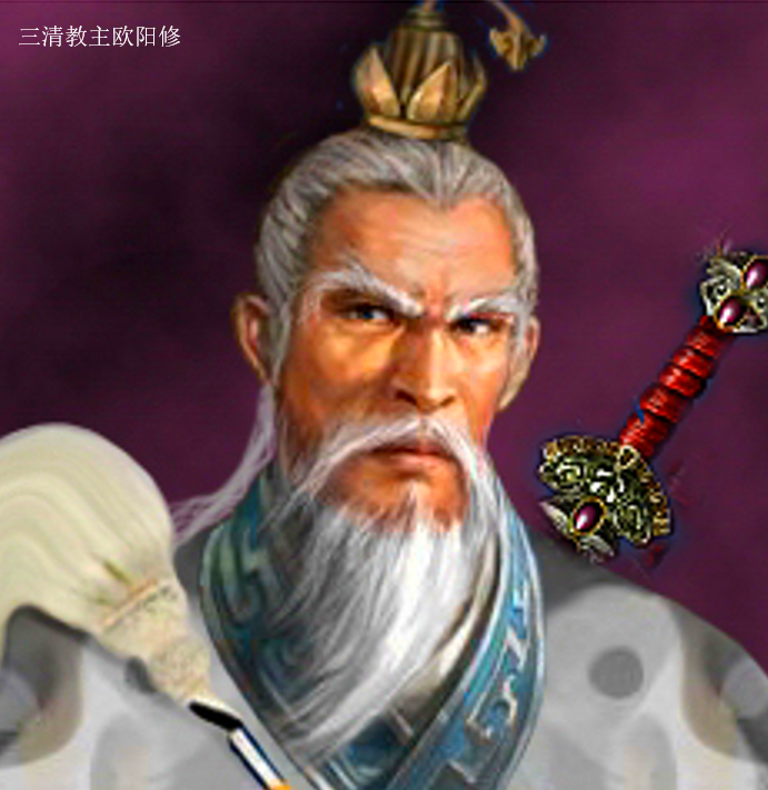 《剑侠图》里有欧阳修的详细说明,他是三清教的第四代顶级高手,他的师父是“三清观三真人”之一的万里清风不染尘虬髯道长司马方孝良,而司马孝良师从三清教的二代高手磨镜老人柴元明,柴元明的师父的就是三清教初代顶级人物封清阳。封清阳号称“道秉乾坤德冠宇宙鸿雁教主”,此人就是三清掌教祖师。