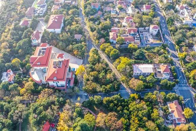 韦一航的家在市南区福山路30号老别墅。沿着老城区的坡路上走,是老青岛经典的建筑,淡黄色的墙和红瓦斜坡的屋顶,马路两旁枝叶相交,满墙的爬山虎,成为这里的氧吧。