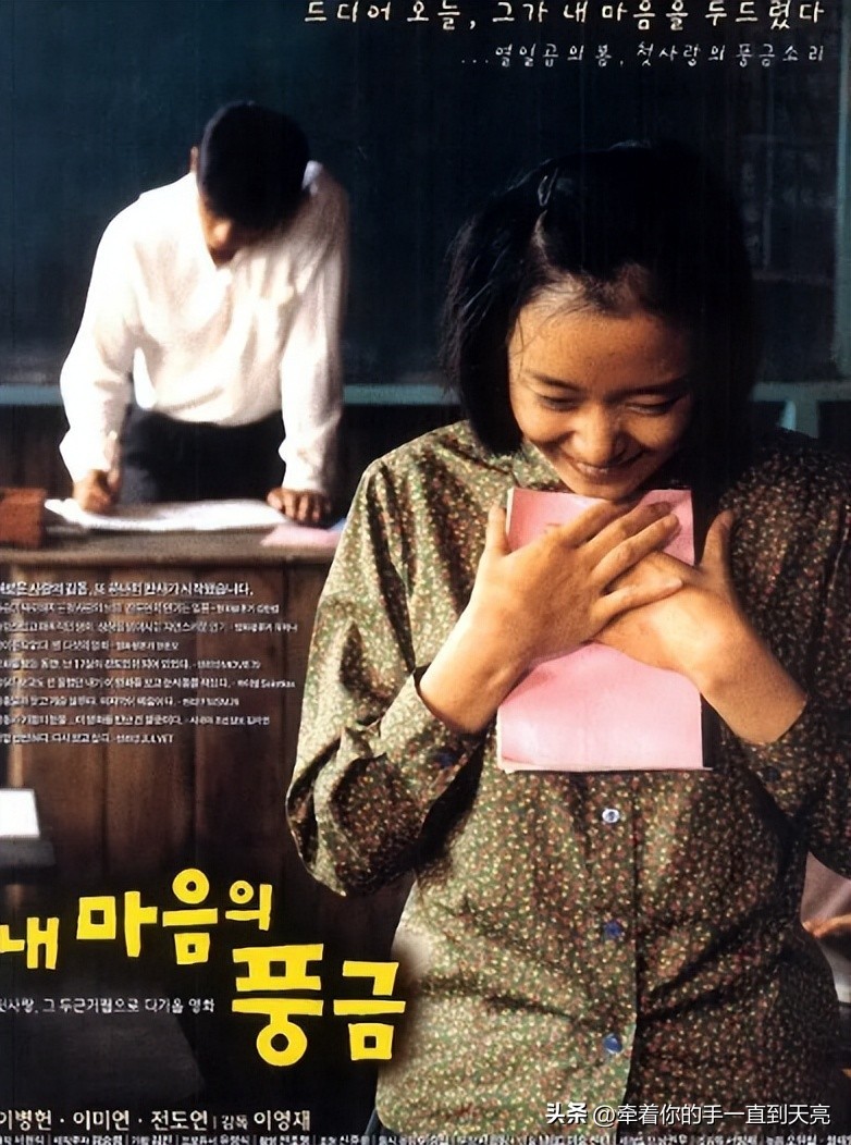 《记忆中的风琴》改编自河瑾灿的《情书》,由全度妍与李秉宪领衔主演,主轴围绕在一名山村女孩的青涩初恋故事。该片以日记的方式描述故事,清新淡雅的笔触与细腻的细节刻画了初恋的美妙以及老师的无私奉献。电影上映后佳评如潮,最终获得第二十届韩国电影青龙奖最佳新导演和最佳女配角奖。