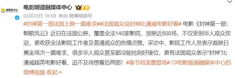 《封神》覆盖全法140家影院,放映近500场,仅仅上映两天,单日票房暂居欧洲之首,打破疫情以来巴黎最著名独立影院之一Max Linder早场上映记录。