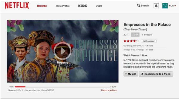 就如网飞最早以收费形式播出的国产剧,正是《甄嬛传》。