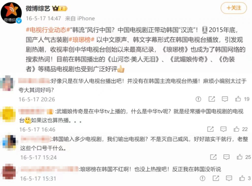 这就成为了国内网络的"中国电视剧正带动韩国‘汉流’"。