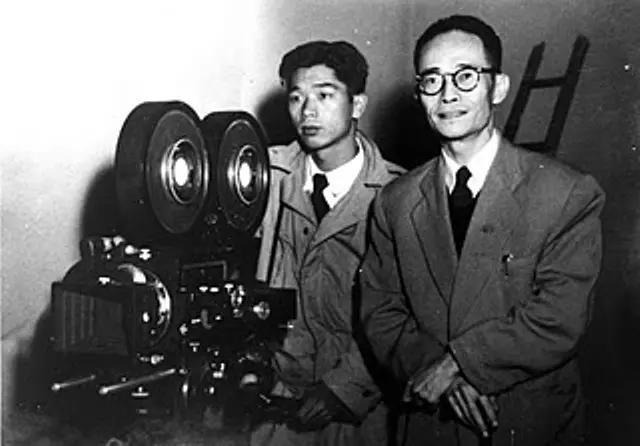 导演朱石麟(右)在片场,代表作《慈母曲》《清宫秘史》《江湖儿女》
