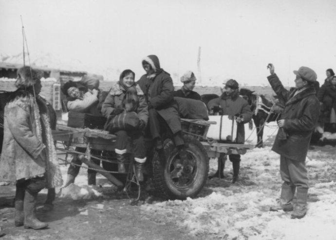在拍摄影片《春满人间》时,王丹凤到公交车上体验售票员的工作